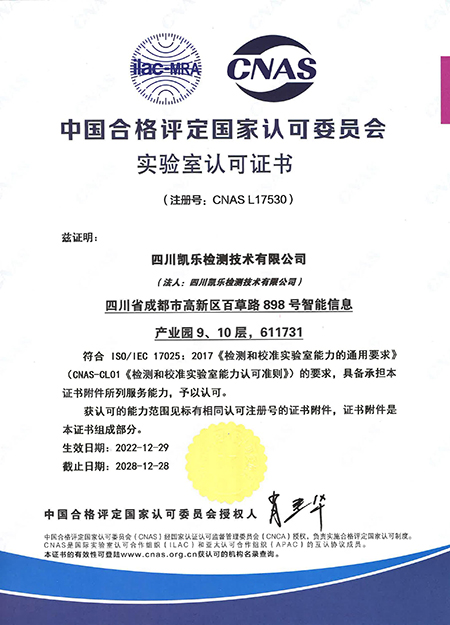 凱樂檢測認(rèn)證集團具備檢驗檢測機構(gòu)資質(zhì)認(rèn)定(CMA)、實驗室認(rèn)可(CNAS)資質(zhì),目前通過CMA的包括理化綜合、重金屬、農(nóng)藥殘留有機物、獸藥殘留有機物、微生物、物理、輻射等檢測指標(biāo)近4000項,涉及環(huán)境檢測領(lǐng)域的水和廢水、環(huán)境空氣和廢氣......